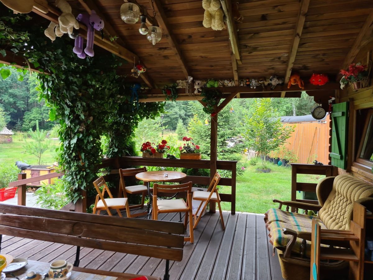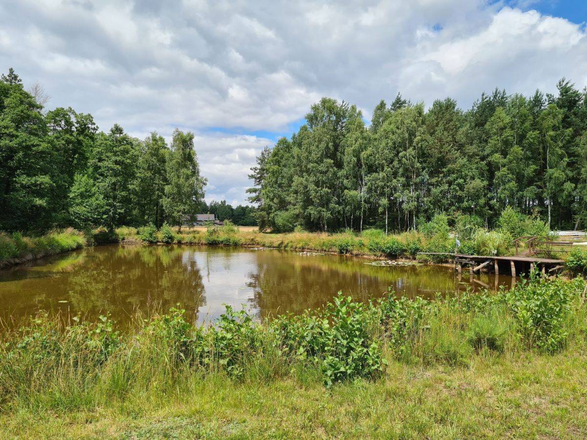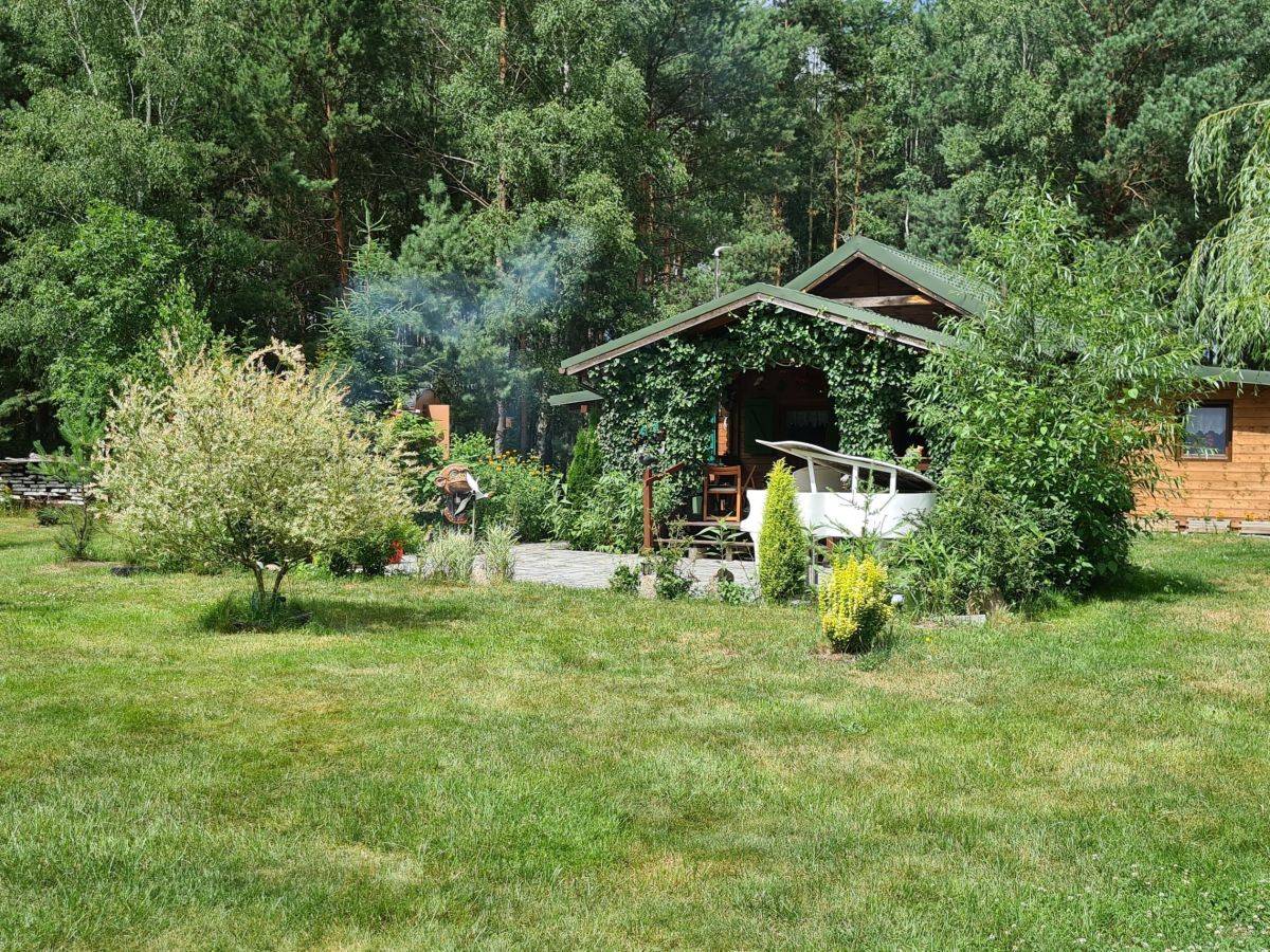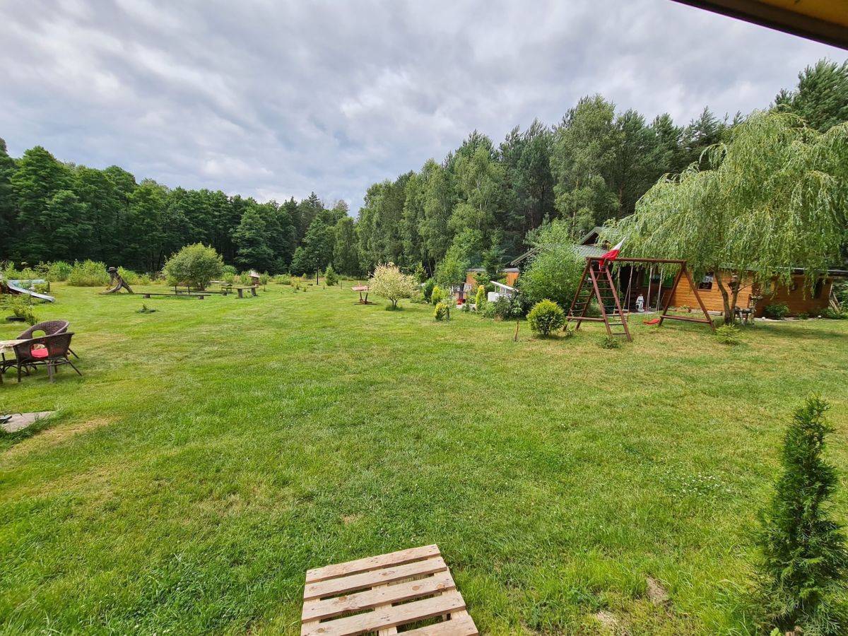 Działka częściowo zalesiona z stawem, zabudowana domem całorocznym jednorodzinnym z bala. Działka o nieregularnym kształcie, otoczona lasem, z dala od ruchliwych dróg. Dojazd do działki drogą gminną nieutwardzoną.