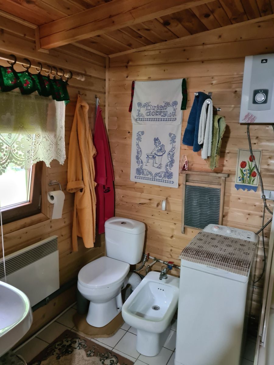 Ciepła woda - bojler. Ogrzewanie elektryczne i dodatkowo - piec typu `koza`.