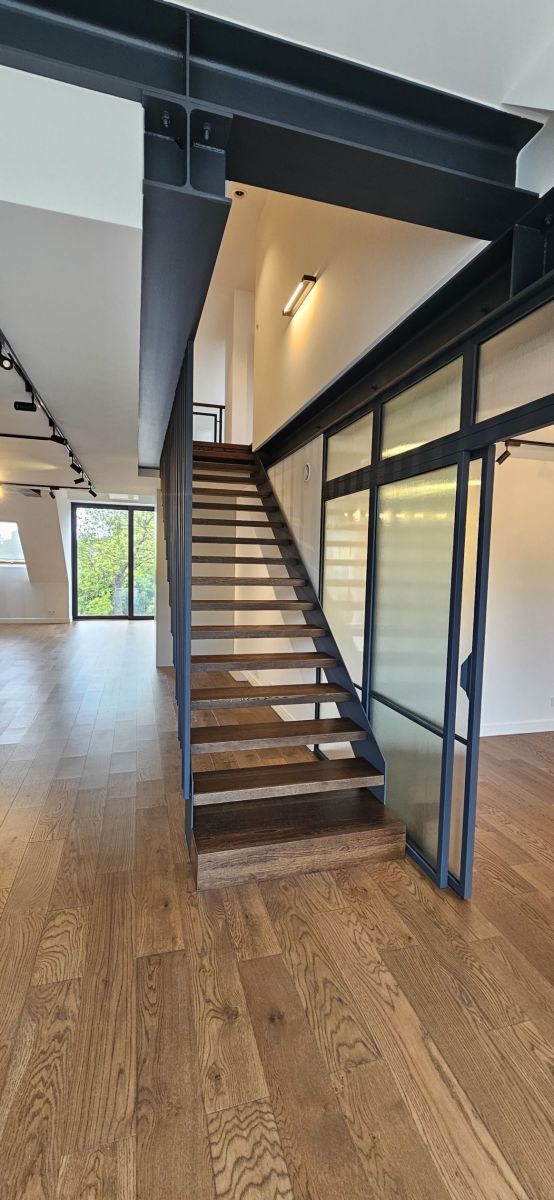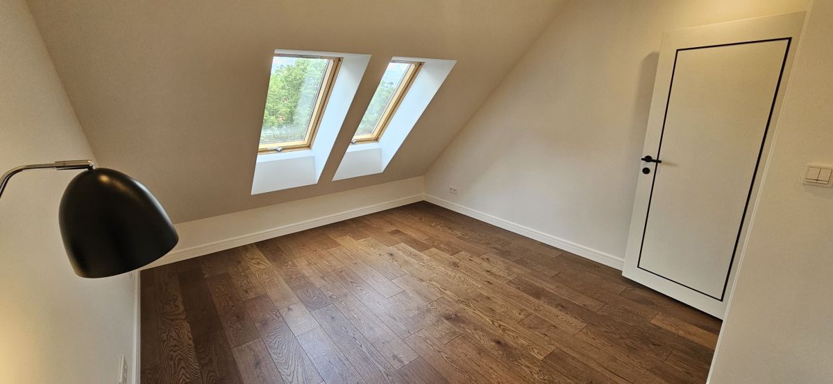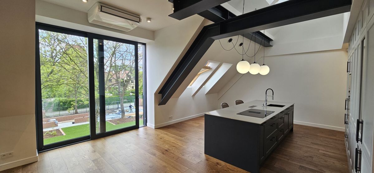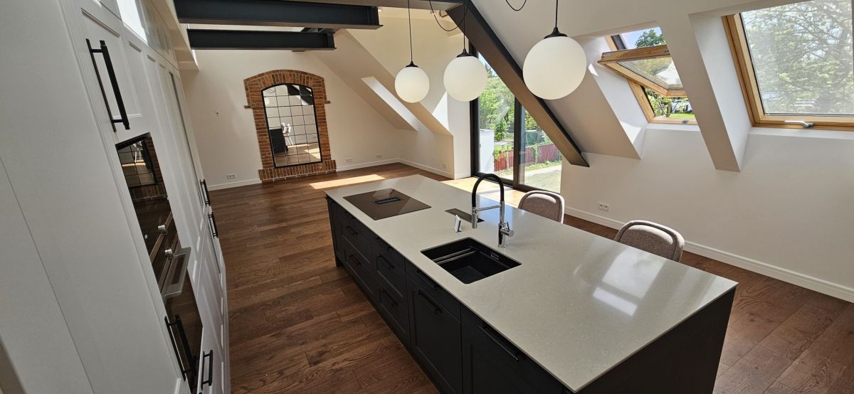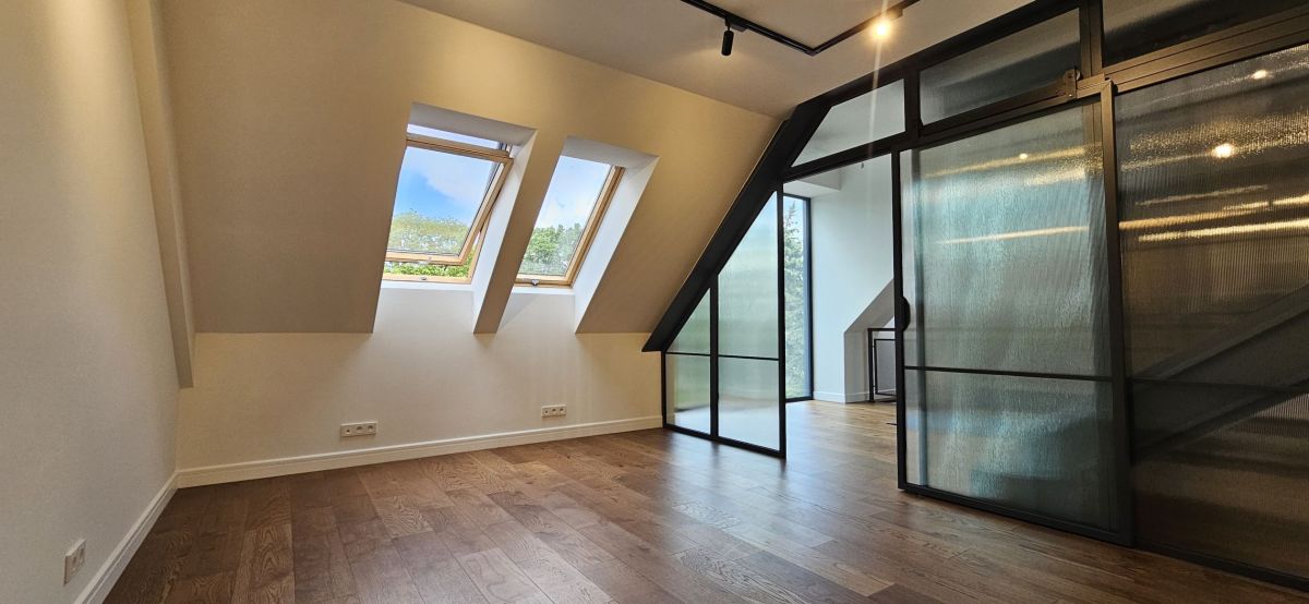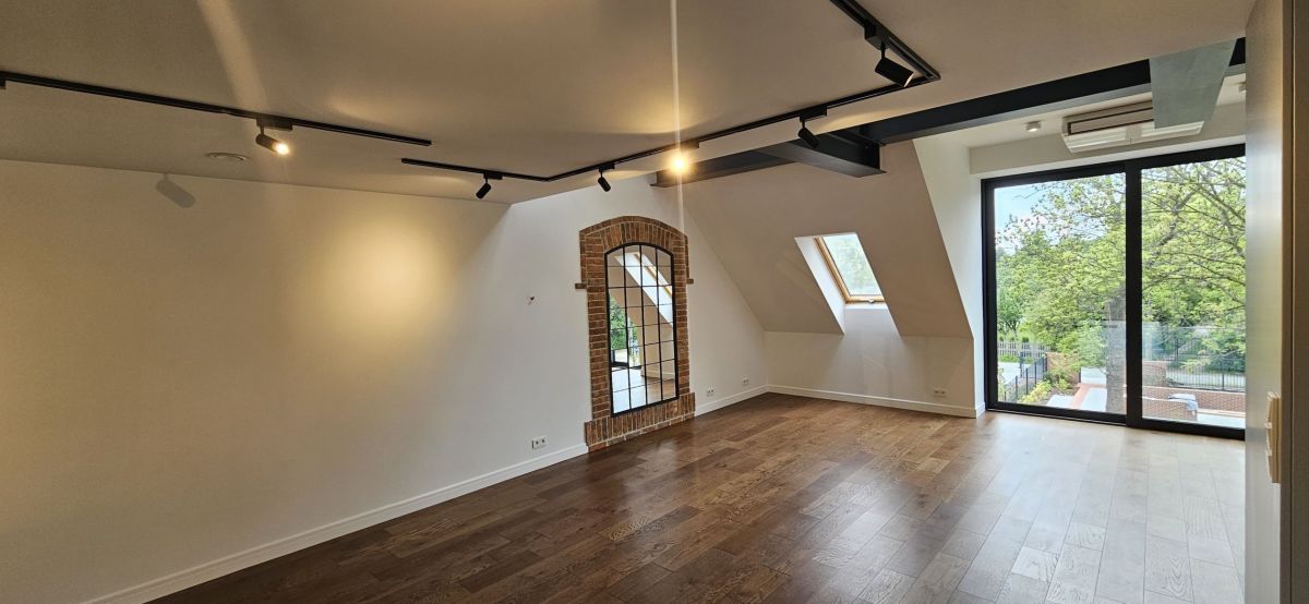 Apartament wyróżnia się nie tylko wysokim standardem wykończenia, ale także naturalnym oświetleniem, które zapewniają zastosowane szklenia i automatyczne rolety zewnętrzne. Wnętrza doświetlają połacie dachowe, a komfort użytkowania podnoszą klimatyzacja, rekuperacja oraz ogrzewanie pompą ciepła.