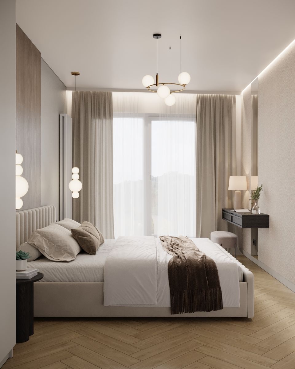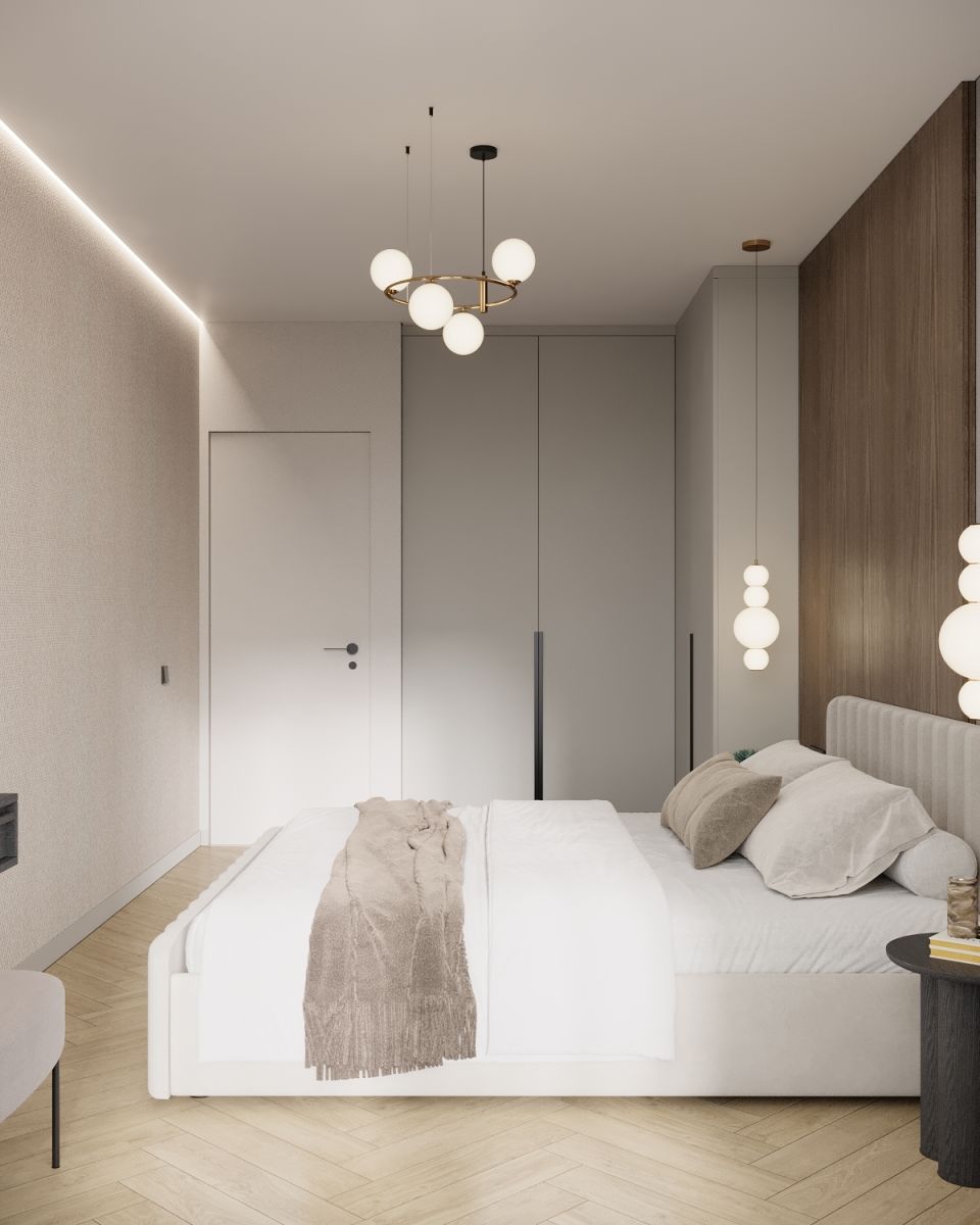 - komfortową sypialnię, zapewniającą idealne warunki do wypoczynku i wyciszenia po intensywnym dniu, z praktyczną zabudową szaf.