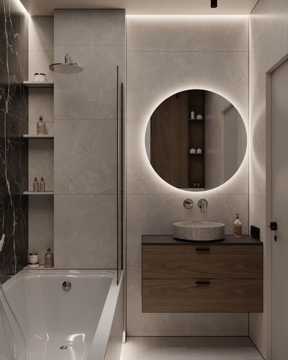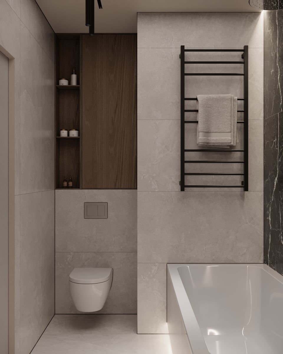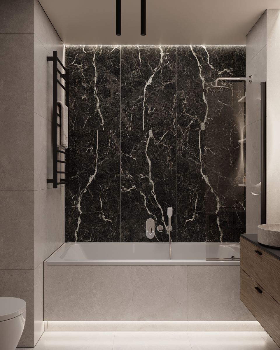 - elegancką łazienkę z wanną, wykończoną wysokiej jakości materiałami, w gustownej kolorystyce - idealną do relaksujących kąpieli przy blasku świec,