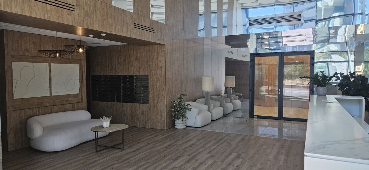 Budynek wyróżnia nowoczesny design w jasnych barwach, uzupełniony dużą ilością zieleni i szklanych powierzchni. Dopełnieniem bezpieczeństwa jest recepcja oraz ochrona fizyczna, zapewniająca spokojne życie i komfort mieszkańców.